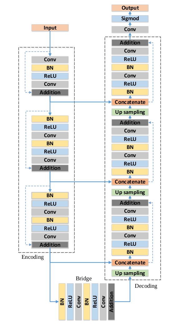 Encoder 와 Decoder 부분의 block마다 residual unit을 추가