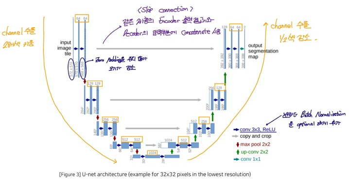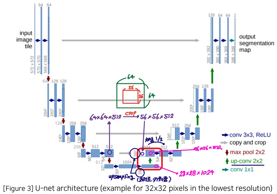 Contracting Path(Encoder)와 Expanding Path(Decoder)가 대칭인 U자 형을 이룬다