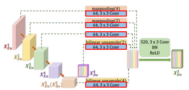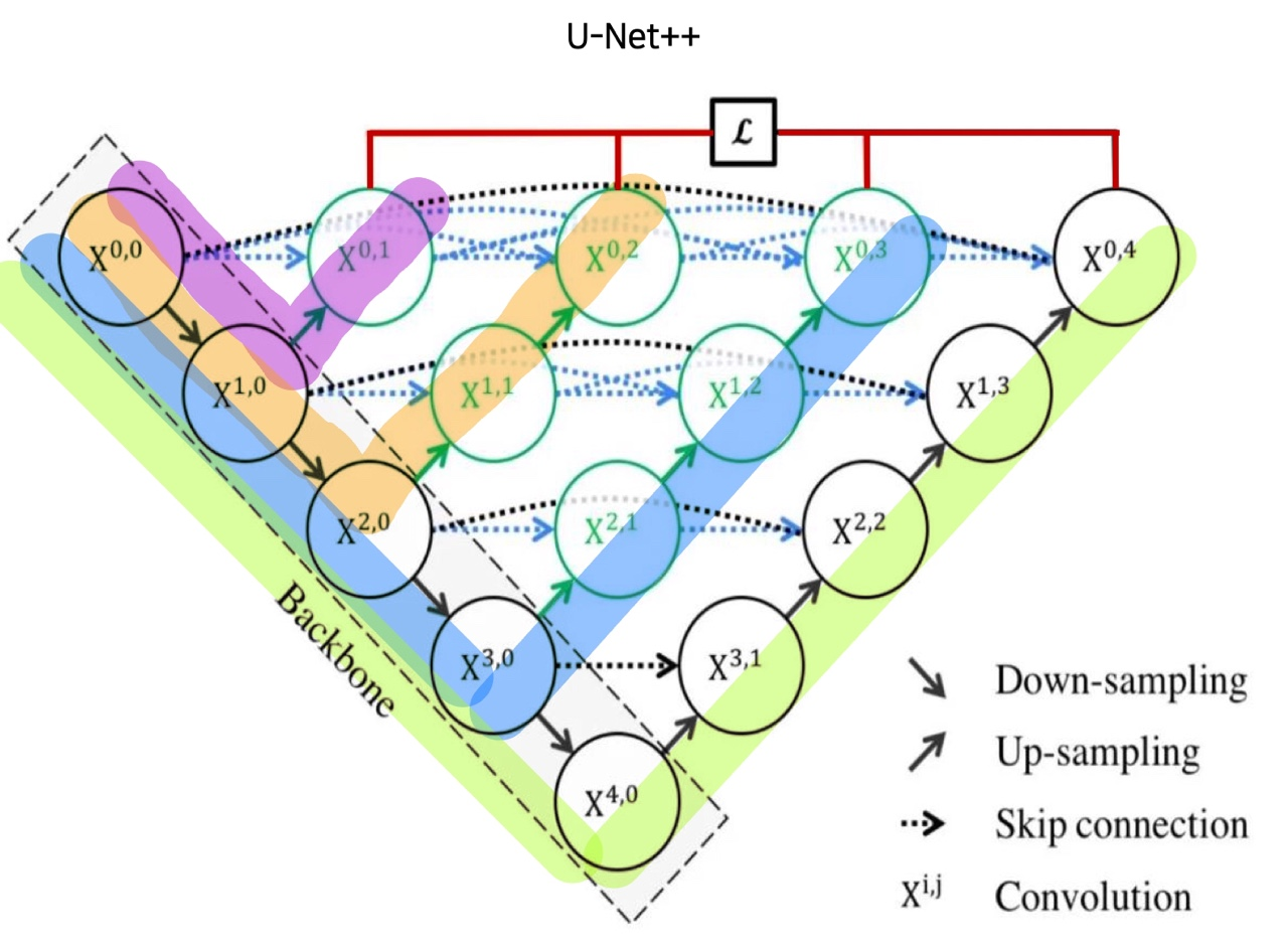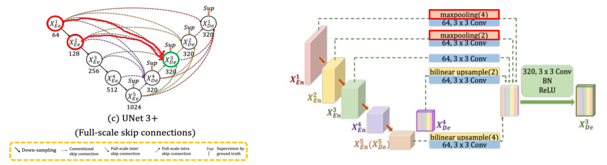 - encoder layer로 부터 Same-scale의 feature maps을 받음 (U-Net ++ 와 동일)