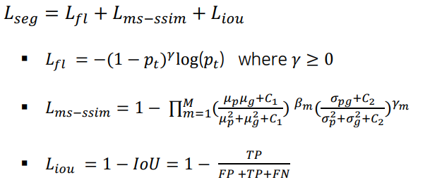 Hybrid Loss = Focal Loss + ms-ssim Loss + IoU