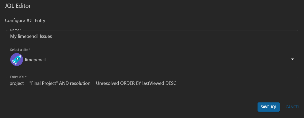 project = "Final Project" AND resolution = Unresolved ORDER BY lastViewed DESC