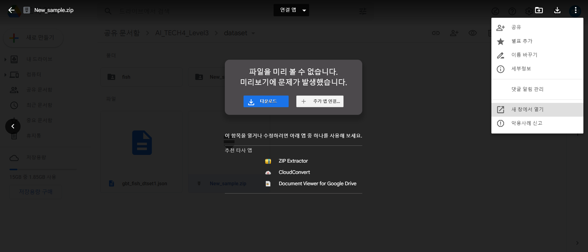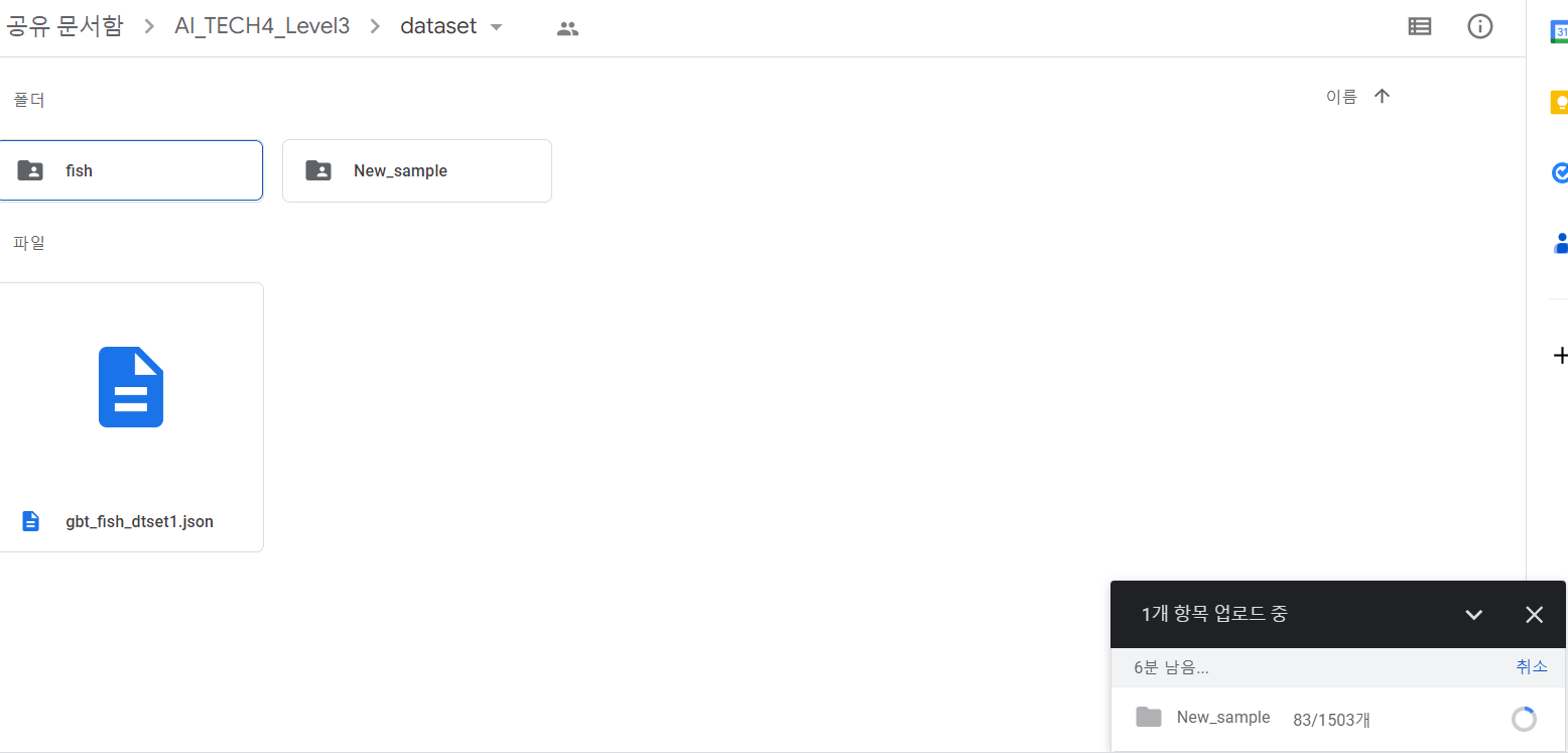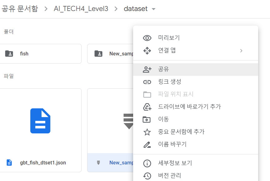 먼저 공유 문서함에 Dataset을 업로드 해준다