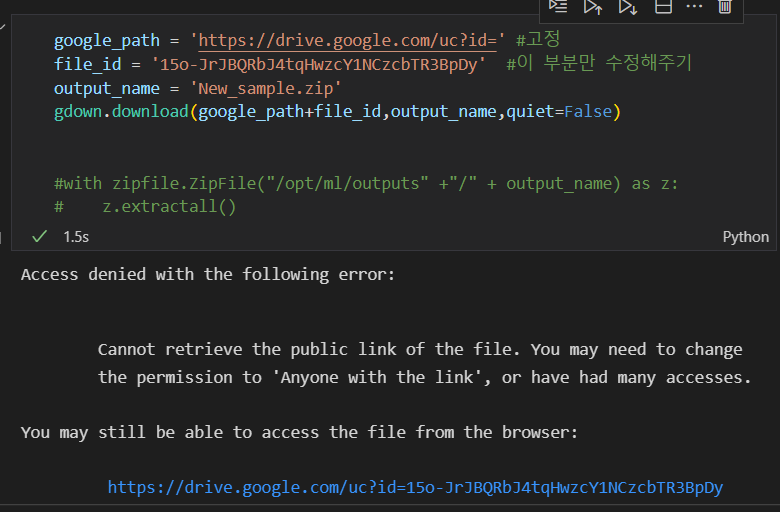 gdown을 이용하여서 데이터를 공유하고자 한다