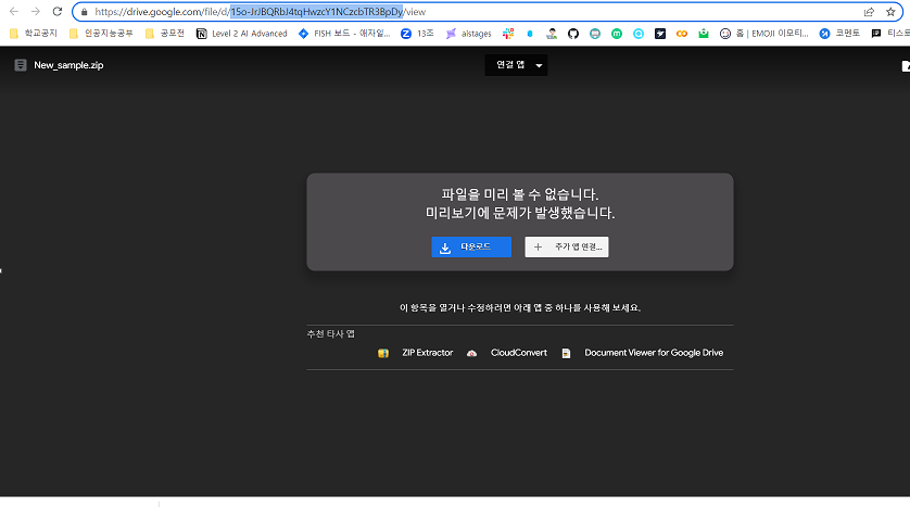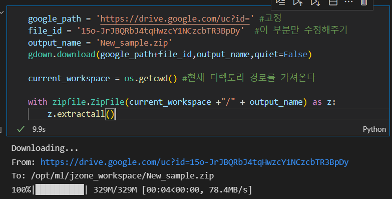 gdown은 폴더 형식은 다운로드가 불가능하다고 하여 zip파일로 올리고 이를 푸는 과정이 필요하다고 한다