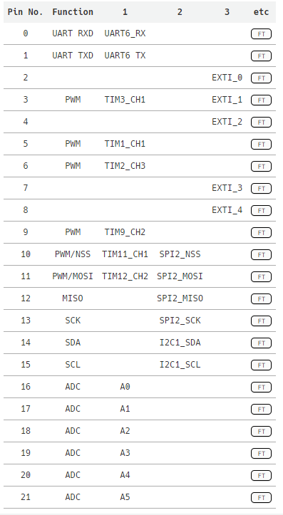 pin 0 ~ 21은 아두이노 우노랑 동일 하다고 한다