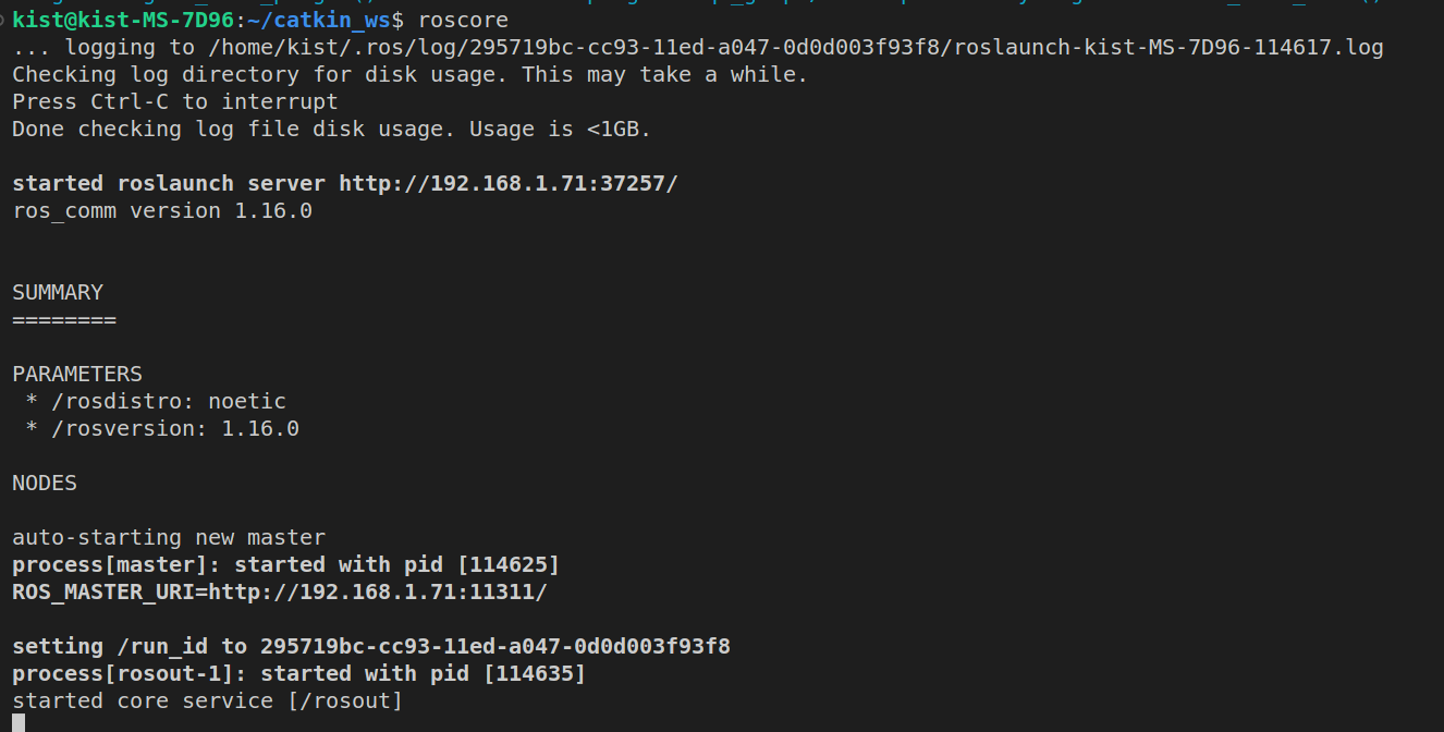 그리고 앞에 경고창을 보면 먼저 roscore를 실행해보라고 조언을 해줍니다