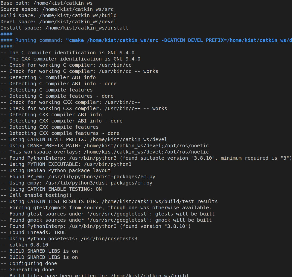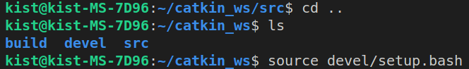 그 다음 현재 디렉토리가 catkin_ws인지 확인하고