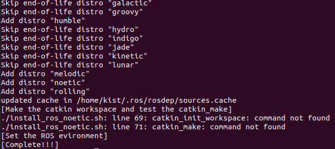 기본적으로 우분투 20.04는 noetic를 사용한다고 한다