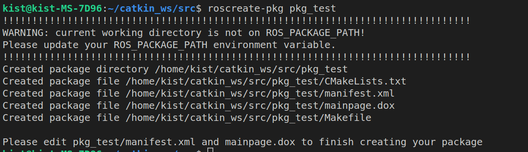 ROS_PACKAGE_PATH에 안 만들어졌다고 다급해 합니다