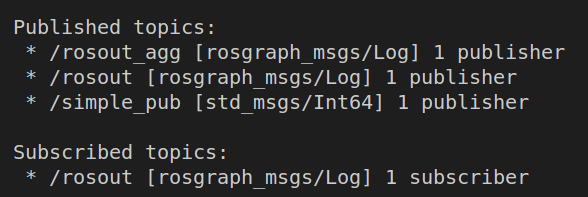 simple_pub 이라는 Publisher(msg로 int를 날리는 )가 만들어진 것을 확인할 수 있다