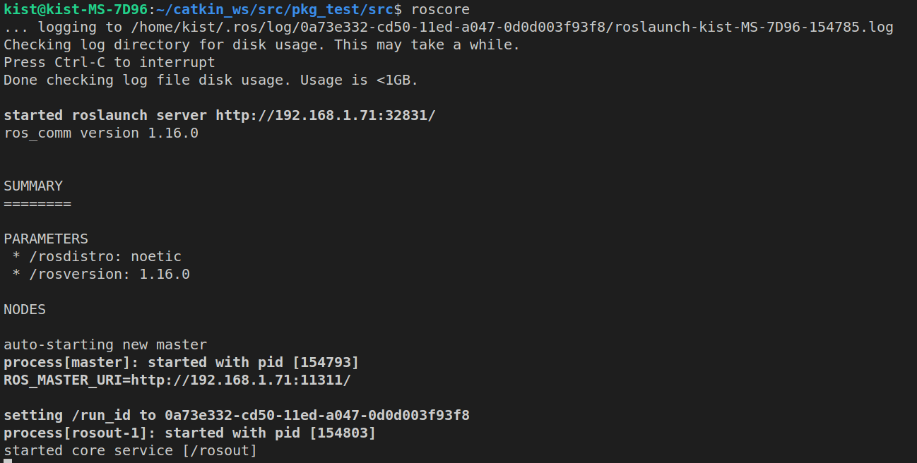 이러고 나서 다시 터미널을 열고 roscore를 하면 자동으로 불러와진다