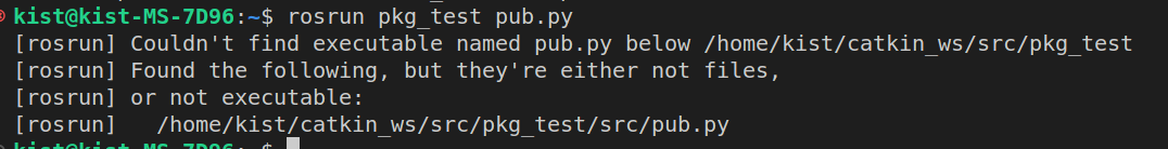 [rosrun] Couldn't find executable named pub.py below /home/kist/catkin_ws/src/pkg_test