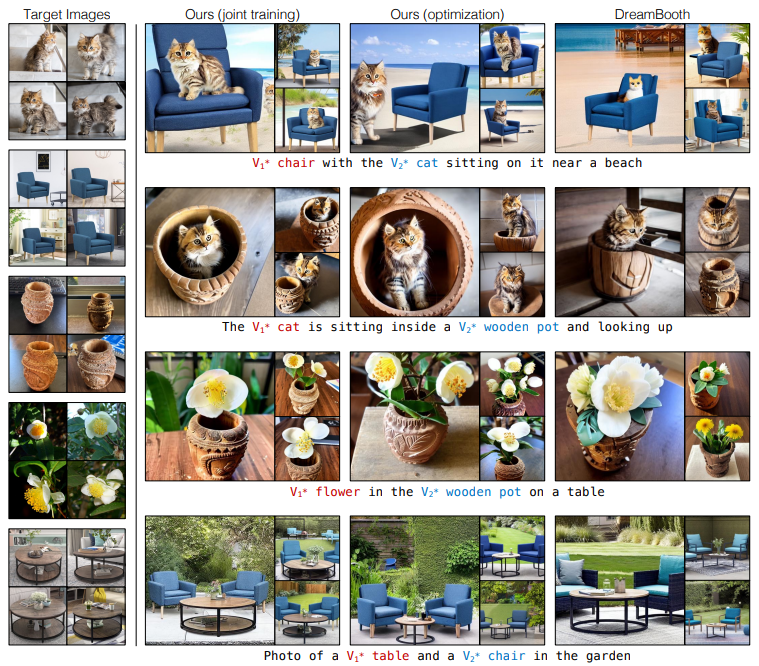 - Jointly train for multiple concepts or combine multiple fine-tuned models