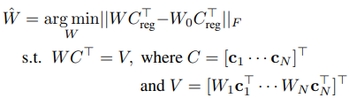 직관적으로, 원래 모델의 행렬을 업데이트 해서 C의 target caption의 단어가 Finetune해서 새로 얻은 matrics값과 일관되게 매핑할 수 있도록 해준다