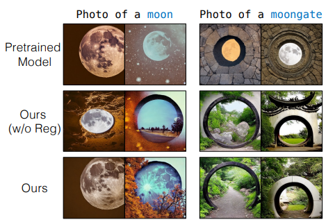- compositional fine tuning : 원래 그 자체의 개념(moon)과 새로운 개념(moongate)의 공존 가능성