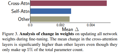 To overcome the above-mentioned challenges, we identify a small subset of model weights, namely the key and value mapping from text to latent features in the cross-attention layers.