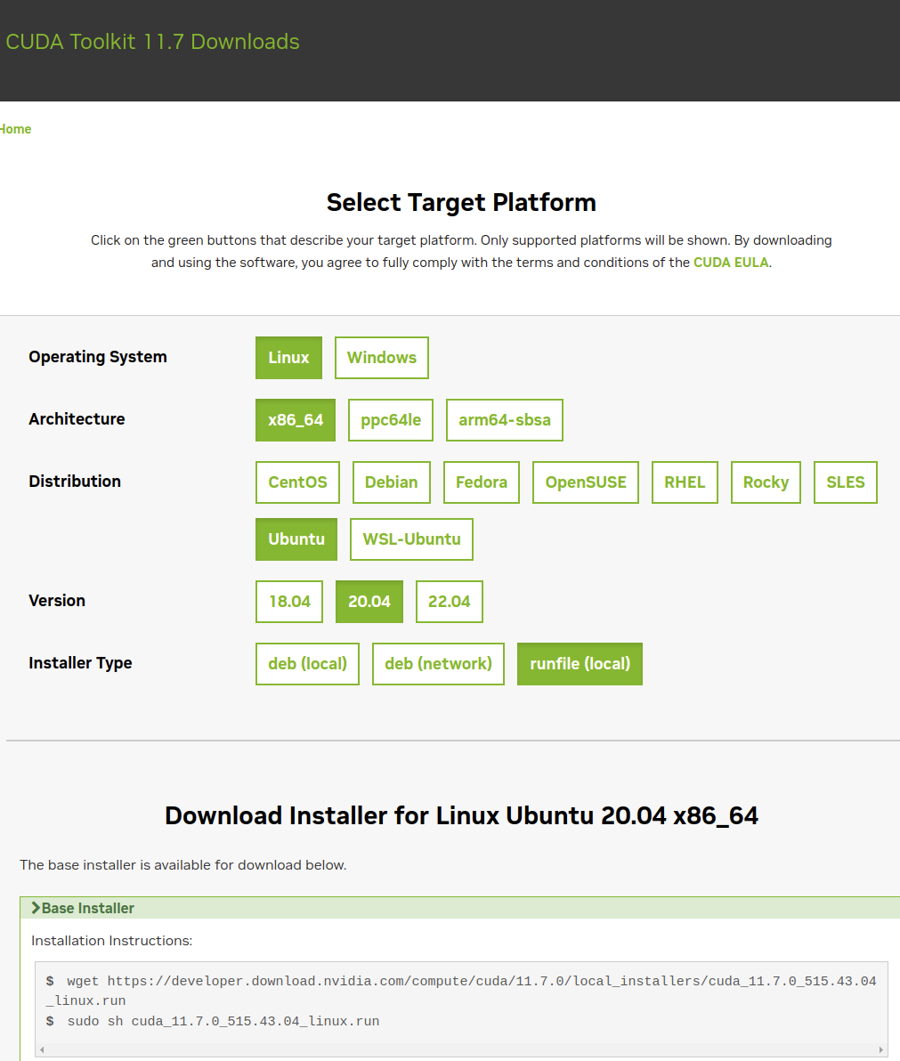 위의 예시 인 경우 CUDA 11.7를 받고 싶다고 하면