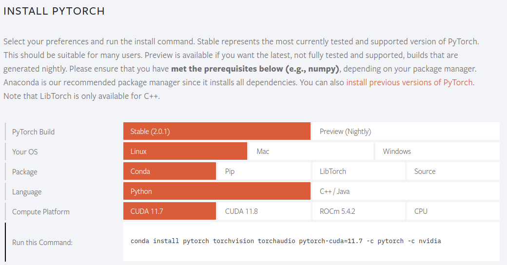 conda install pytorch torchvision torchaudio pytorch-cuda=11.7 -c pytorch -c nvidia