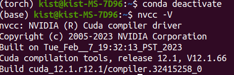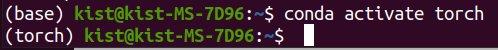 activate를 했을 때 앞에 (base)가 (torch)로 바뀌면 성공