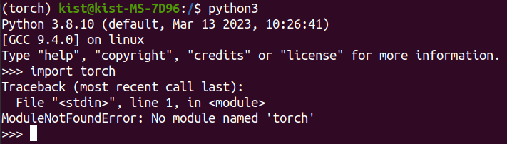 < 가상환경에서 torch 실행 >