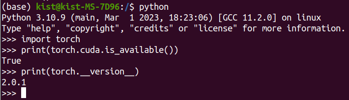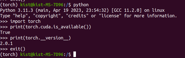 print(torch.cuda.is_available()) // torch 제대로 설치되었는지 확인