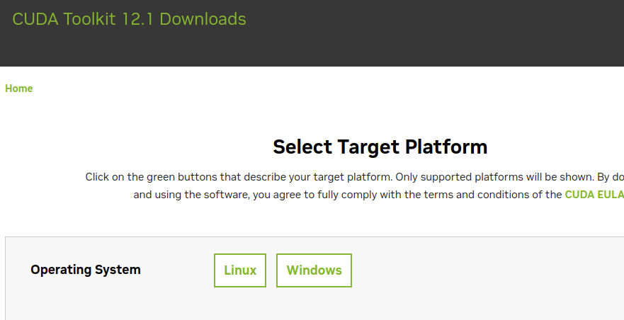 Compute Platform에 적혀있는 version으로 애초에 다운 받아주자