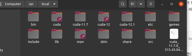 없던 cuda관련 파일들이 있는 것을 확인할 수 있다