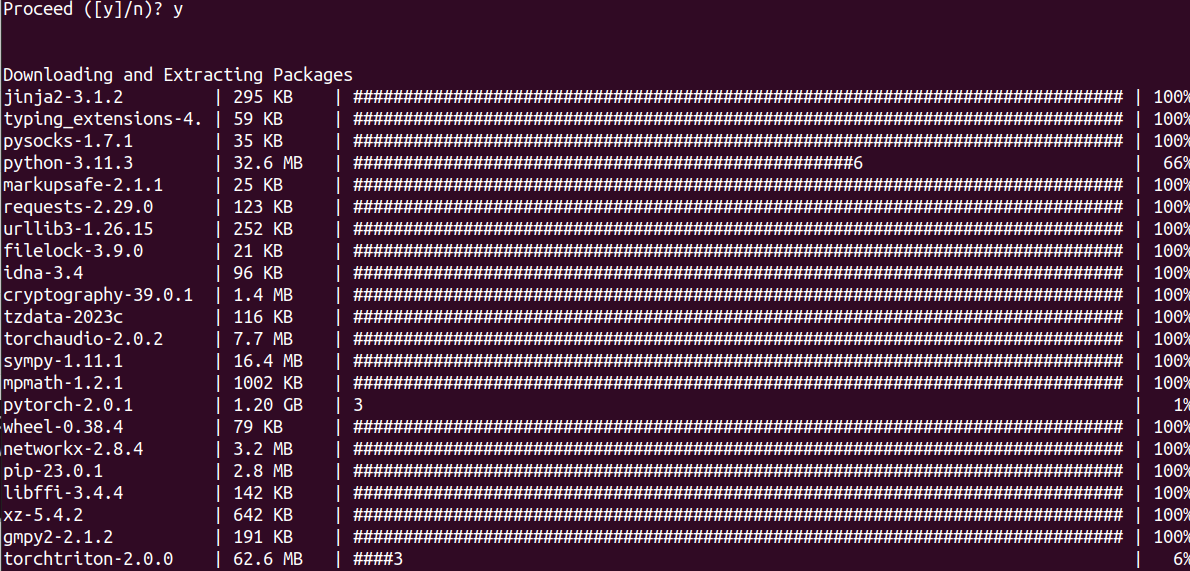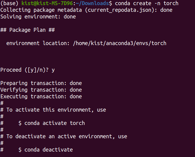 저는 혹시 되나하는 마음에 torch라는 이름의 가상환경을 실행시키고 아래의 명령어를 실행시켰습니다