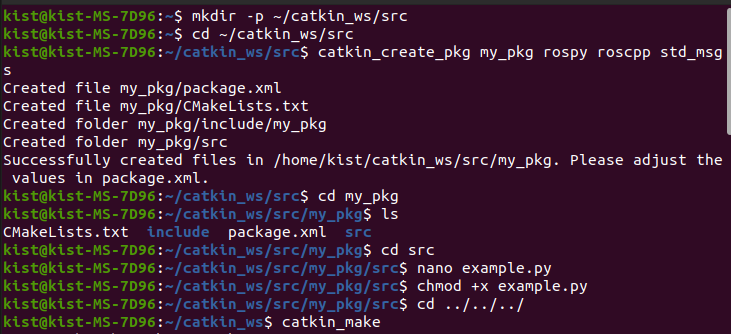 catkin_create_pkg my_pkg rospy std_msgs roscpp