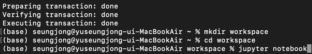 home화면이 더러워지지 않게 workspace 폴더를 만들어 주고 여기서 jupyter notebook을 열자