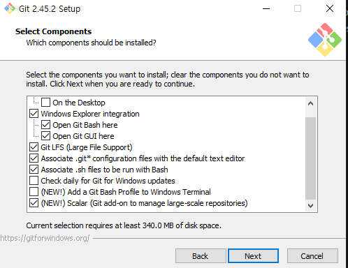 여기 체크 리스트에 Add a Git Bash Profie 이 체크되었는지 확인하자