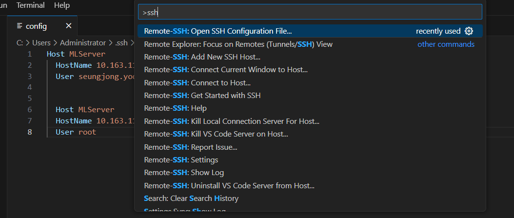다시 Ctrl + Shift + P 연 다음 ssh 검색
