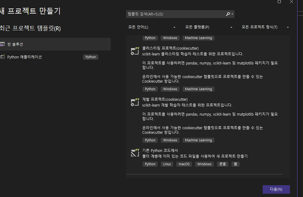 나 Python 용으로 Visual Studio를 깔아서