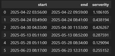 train_anomalies =pd.DataFrame(context['y'], columns=['start', 'end', 'severity'])