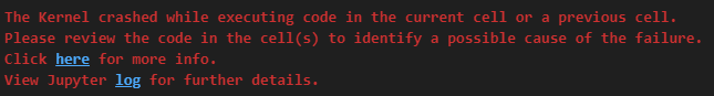 The Kernel crashed while executing code in the current cell or a previous cell.