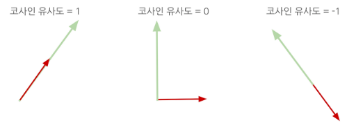 코사인 유사도 (Cosine Similarity) : -1 ~ 1 의 값을 가짐