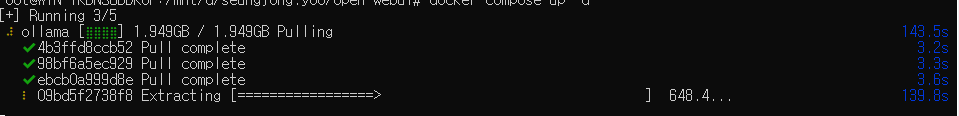 본인 같은 경우는 기존에 다운 받았던 open-webui container랑 충돌이 나서 삭제 후 다시 진행