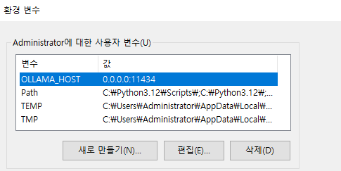 Windows Defender 방화벽 → 고급 설정 → 인바운드 규칙 → 새 규칙 → 포트 선택TCP 11434 허용 규칙 추가