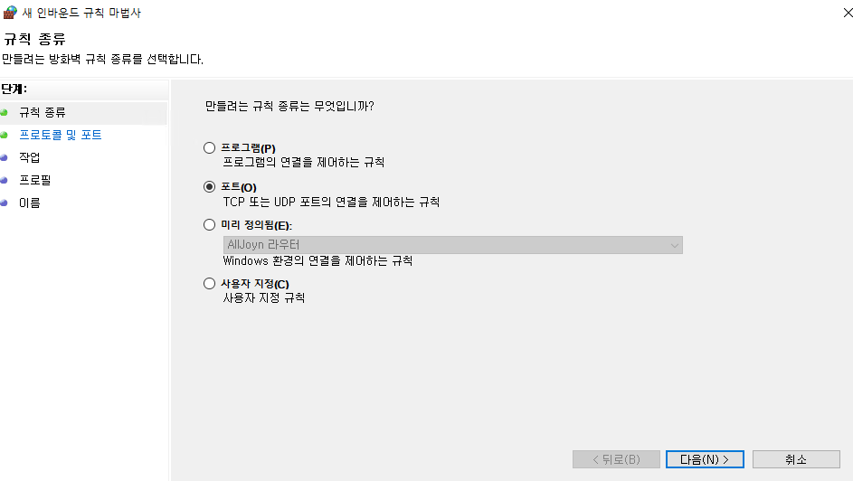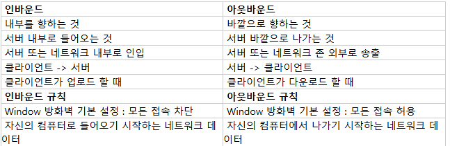 설정을 하려면 인바운드 / 아웃바운드에 관해 알아야 하는데