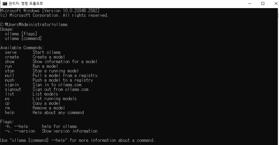 - 터미널에서 ollama run 명령으로 실행한 경우, 해당 터미널에서 Ctrl + C를 누르면 Ollama가 종료됩니다.