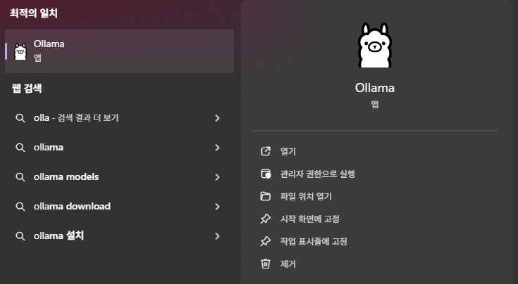 이렇게 설정을 맞췄으면 ollama를 아래와 같이 열어주자