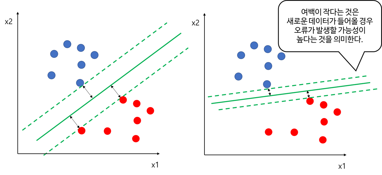 - Margin(여백) : Support Vector machine의 핵심이다.
