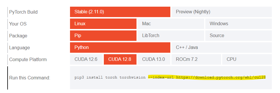 (url 찾는 곳 : Pytorch 공식 페이지 : https://pytorch.org/get-started/locally/ )