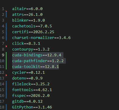 requirements.txt를 수기로 다음과 같이 바꿨다