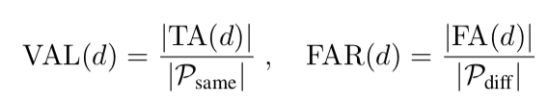 FAR, VAL rate는 10만 X 10만 이미지 쌍에 대해 구함
