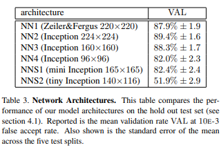FaceNet의 end-to-end training은 초기 설정을 간단하게 하고 성능을 향상시키는 수작업과 같은 손실을 최적화하는 것을 직접적으로 보여준다.