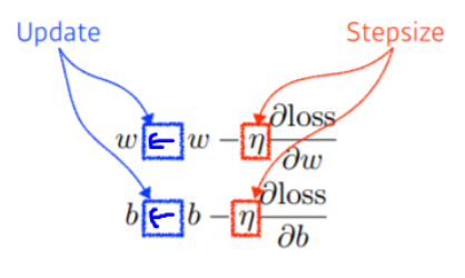 loss function을 줄이는 것을 목표로 편미분(W와 b 에 대해)을 통해 업데이트 해나가는 방식으로 추론해낸다