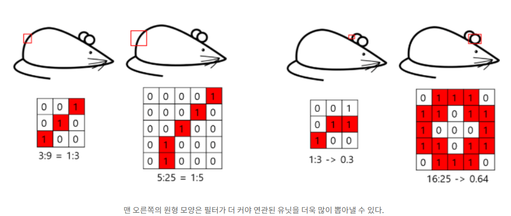 이전 계층의 각 단위가 이미지의 일부에 해당하는거 아닐까? (일부를 요약해주는 느낌) -> 이거를 filter bank로 묶어보자 !!
