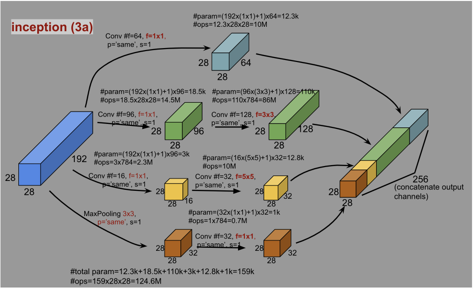 3x3 Conv, 5x5 Conv에 넣기 전에 1x1 Conv돌려서 차원을 축소시켰다. 심지어 1x1 Conv연산 이후에 Relu를 추가해서 비선형적 특징 까지 얻을 수 있음