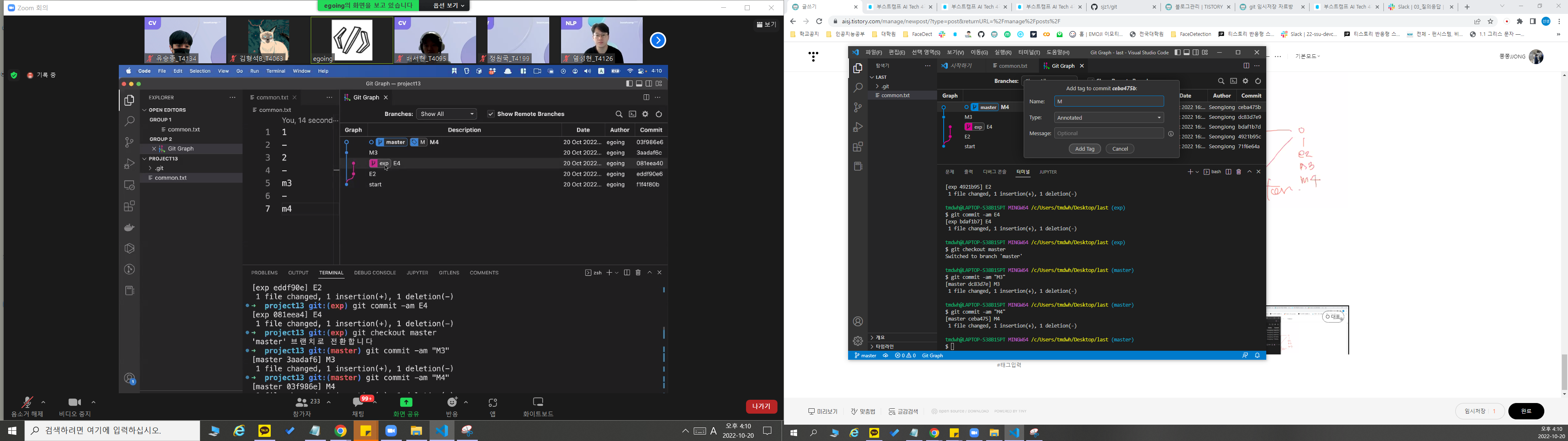 / release 브랜치 작업 내용을 master 브랜치로 병합 - Tag를 만듦, Tag로 checkpoint(* 비유임)!!